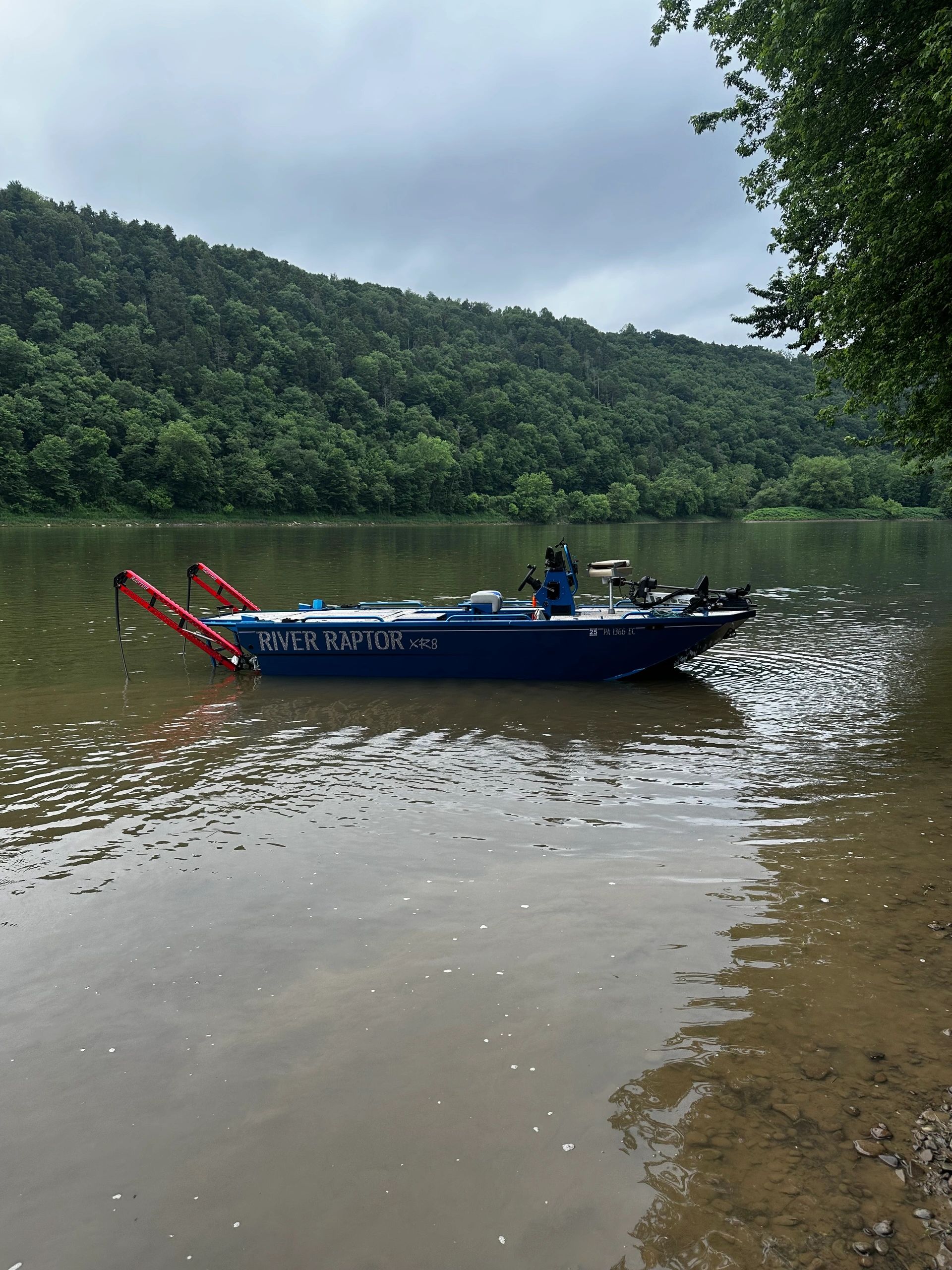 This boat is powered by a 310HP Indmar 2.3 EcoBoost Motor with Hummingbird Helix 7 and 10. We use a Minn Kota Ultrex 112 with a Dakota Lithium battery for peak performance. This boat navigates within only inches of water allowing us to go virtually anywhere within the shallow depths of the Susquehanna River North Branch. This boat puts you where the fish are!